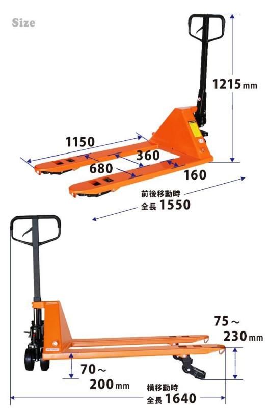 • 商品名 KIKAIYA ハンドパレットトラック2500kg 横移動兼用 トラバース