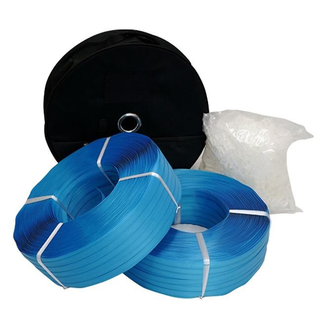 PPバンドディスペンサー PPバンド手締めセット PPバンド (2巻) + バンドストッパー (1000個) + 収納バック (1個) 手締め用 簡易梱包 KIKAIYA SET-P