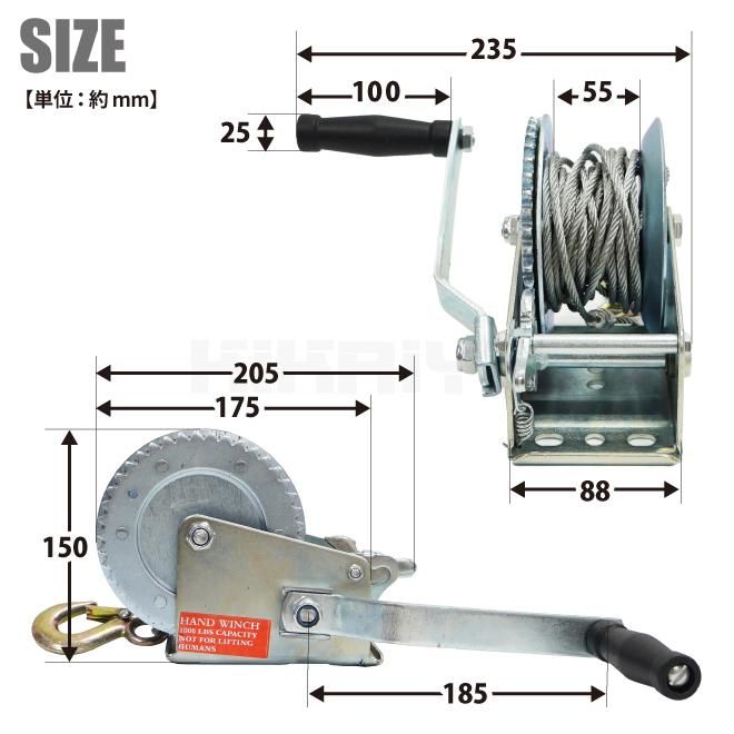 | 巻き上げ量 | 約50〜60mm(ハンドル1回転あたり) |
