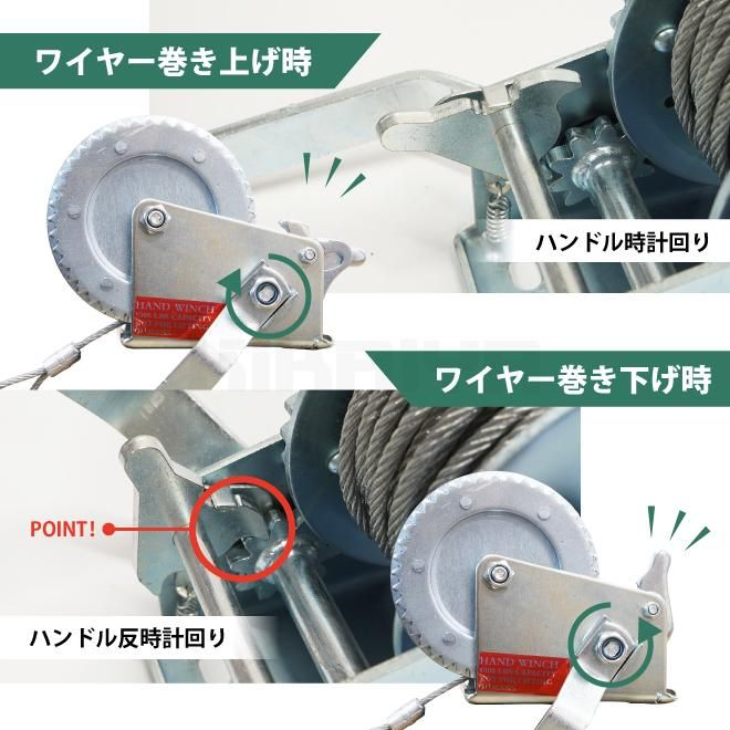巻き上げ・巻き下げ切り替え式! 亜鉛メッキ仕上げなので錆びにくく丈夫!