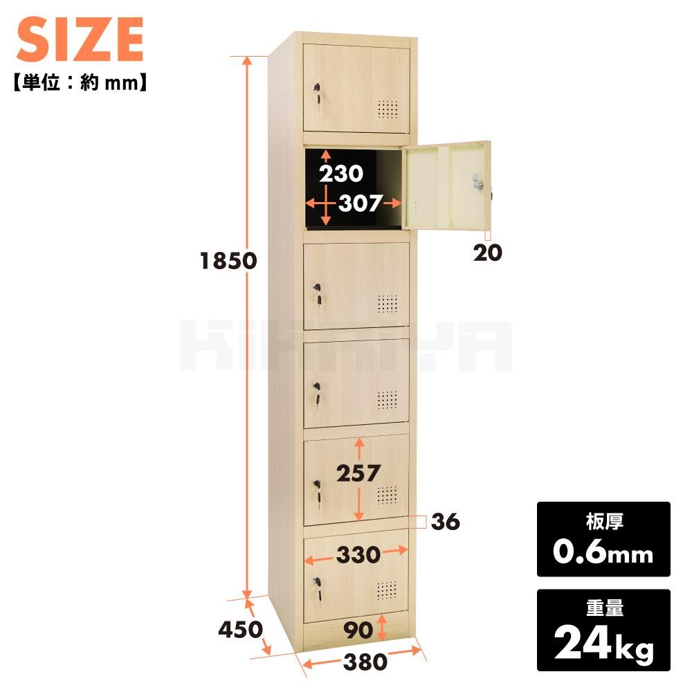 • 商品名 KIKAIYA スチールロッカー 6人用 1列6段 木目調