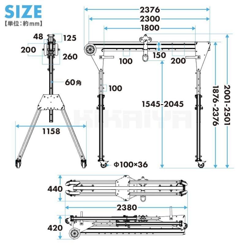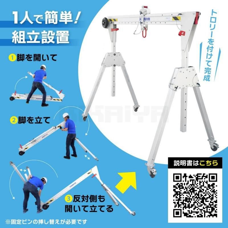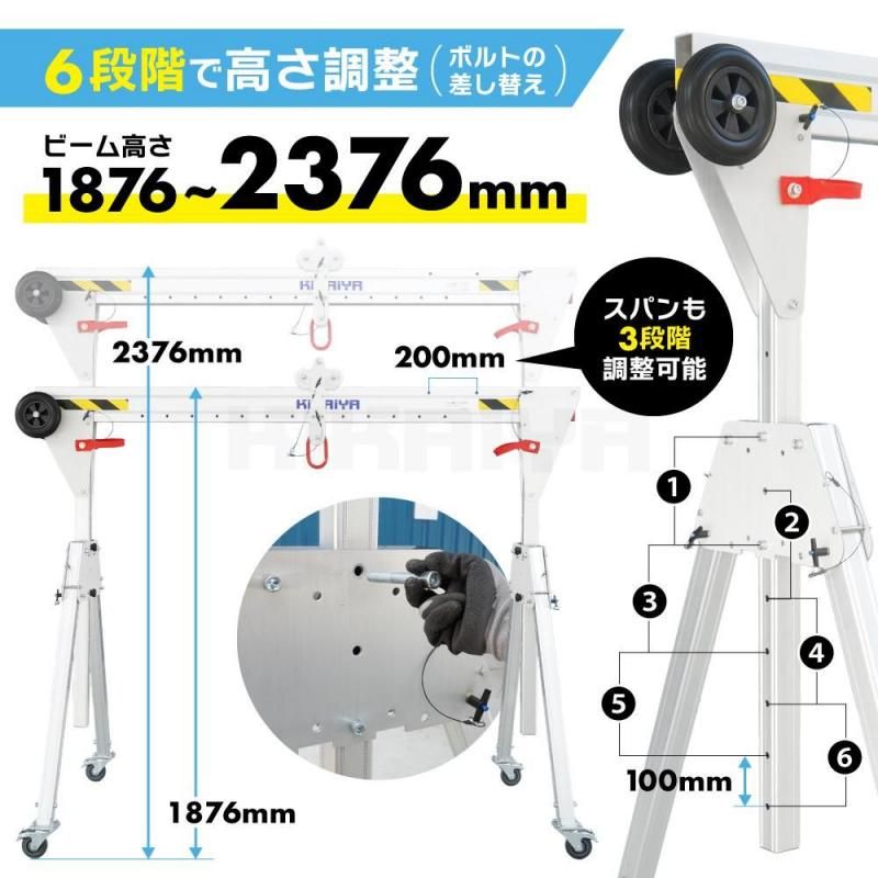 • 商品名 KIKAIYA アルミ製折りたたみ式ガントリークレーン 400kg