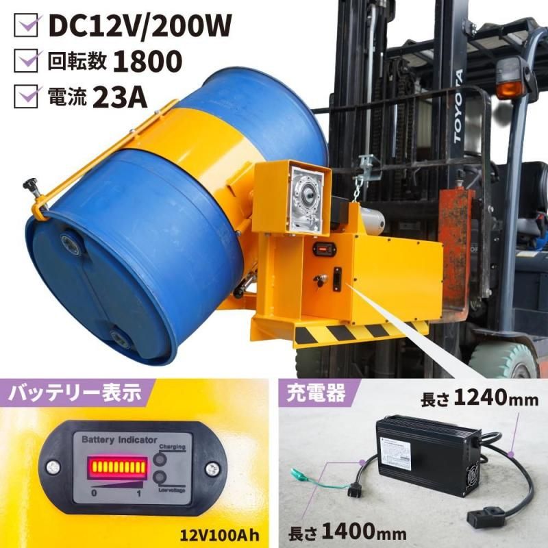 ドラム缶反転機 電動 無線リモコン付き アルミ製ギアボックス ドラムチルト フォーク用 スチールドラム ポリドラム KIKAIYA DHR-12E