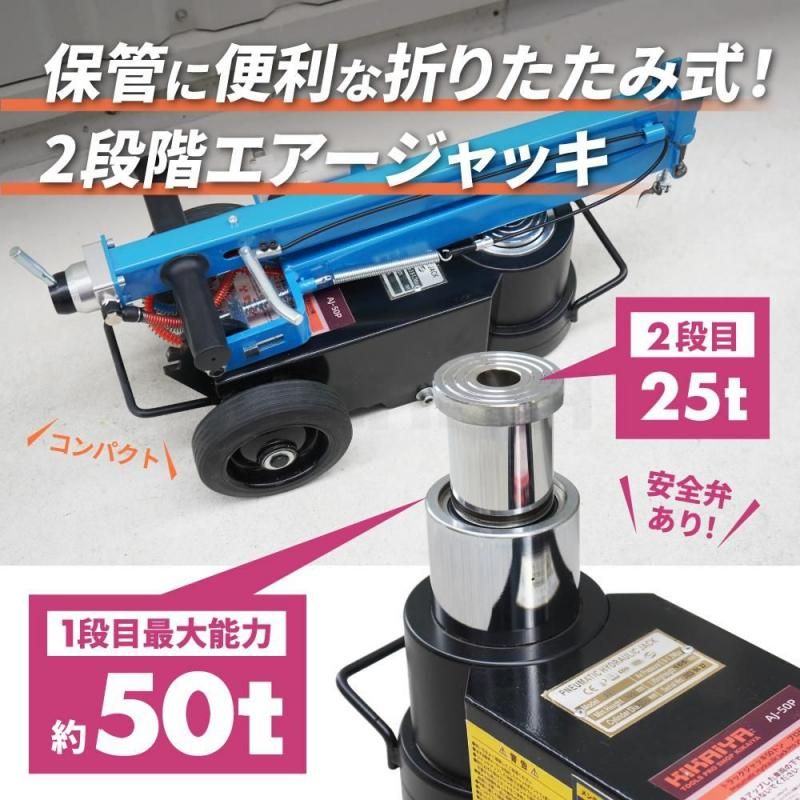 トラックジャッキ 50トン 25トン ハンドル 折りたたみ式 プロ仕様 2段シリンダー エアージャッキ ガレージジャッキ フロアジャッキ 整備用 6ヶ月保証 KIKAIYA AJ-50P