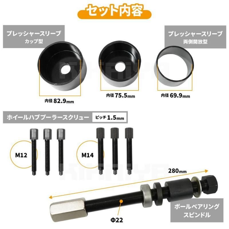 | セット内容 | ・プレッシャースリーブ ×3個 ・プレッシャーピース ×9個 ・ボールベアリングスピンドル ×1個 ・ホイールハブプーラースクリュー×2種/各3本 |