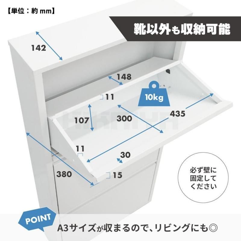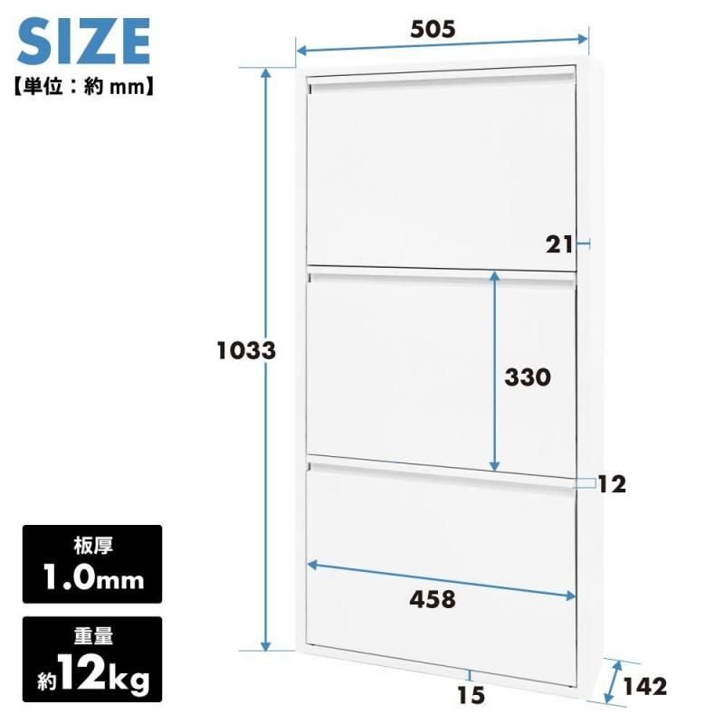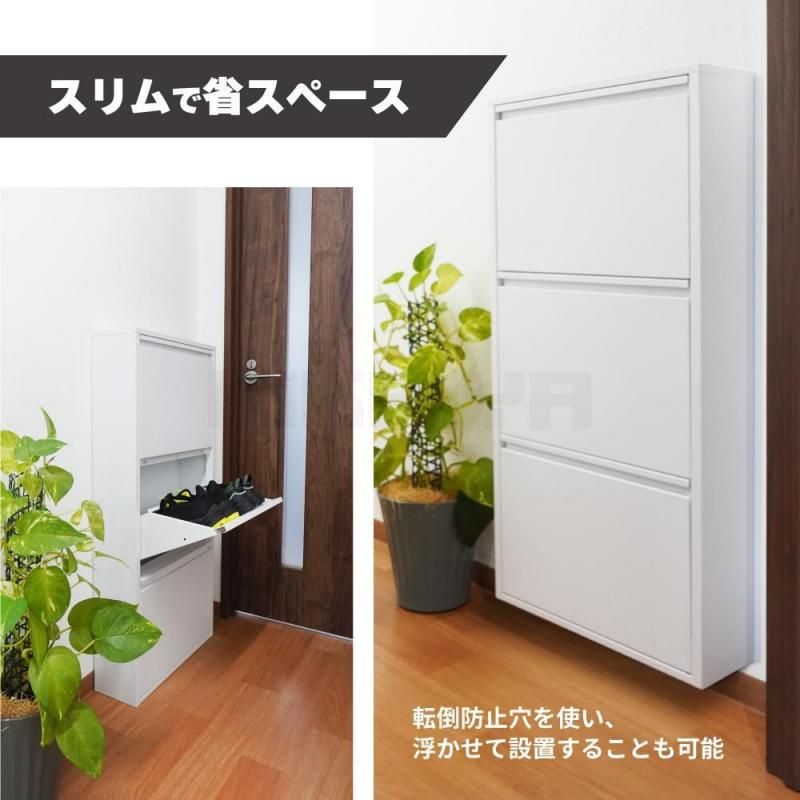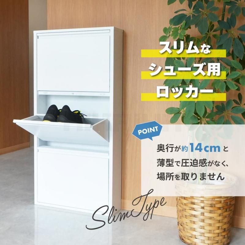 【アウトレット特価】靴箱 下駄箱 シューズボックス スリム 薄型 白 ホワイト スチールロッカー シューズ用 2足3段 6足収納 フラップ扉 壁掛け 直置き SRS3-W KIKAIYA PARTS25-52