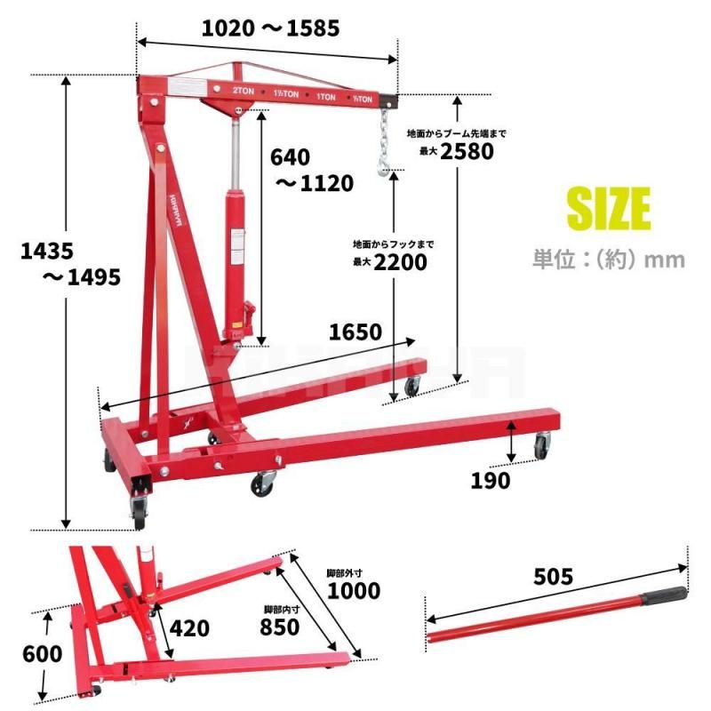 エンジンを軽々と持ち上げ、脱着などが行える! 荷の位置保持ではなく、吊り上げ専用として荷重500kg(最大伸長時350kg)以下でご使用ください ※本製品はエンジンの吊り上げを想定した商品です 本来の目的以外には使用しないでください ■ 交換用油圧ジャッキも販売しております ■吊り具の販売もございます *ナイロンスリング 各種 *エンジンハンガー 900kg ※ご購入後、ご不明な点がございましたらチャットにてお問い合わせください |